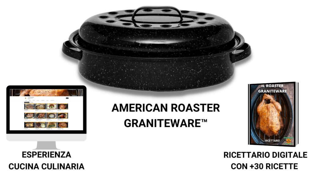 Roaster GraniteWare™ è l’autentica rostiera americana prodotta dal 1871 già record di vendite in Italia, progettata per sorprendere a tavola senza aggiungere grassi, raggiungendo un risultato unico in maniera semplice facile e veloce.